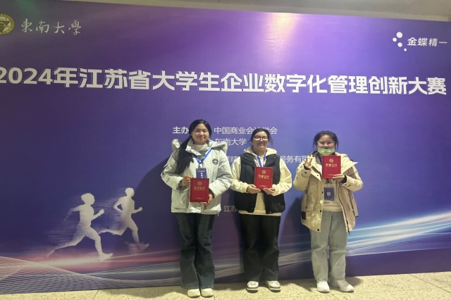127日,2024江苏省大学生企业数字化管理创新大赛在东南大学举行。来自全省各大高校的85支优秀团队齐聚一堂,共同展开了一场智慧与创新的较量。经过比赛的激烈角逐,由我校杨春涛、颜雪寒、黄心妍三名学生所组成的“你的强来啦”荣获二等奖,由李思蓉、马然、曹冉旭三名学生所组成的“机电旺旺队”荣获优秀奖。此外,大数据与会计专业教师王诗雅、薛蓓蓓荣获优秀指导教师。
