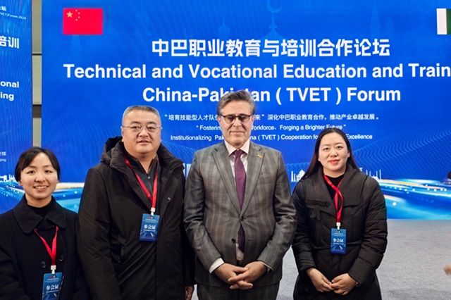 2024年12月19日,“中巴职业技术教育与培训(TVET)论坛”在巴基斯坦驻华大使馆隆重举行。本次论坛以“培育技能型人才队伍:共创美好未来”为主题,旨在深化中巴职业教育合作,推动产业卓越发展。开云官方网页版党委委员、副校长刁爱军,党委委员、纪委书记、工会主席姜振宇以及机电一体化技术专业负责人叶泉受邀参加此次盛会,与中巴两国各界代表共话职业教育与培训的发展蓝图。