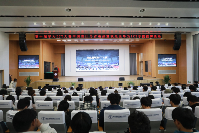 2025年10月21日下午,第十届华为ICT大赛中国赛·江苏省路演暨领先级华为ICT学院授牌活动在学校乐学楼101报告厅举行。领先级华为ICT学院的授牌,不仅是学校深化产教融合、推进ICT领域人才培养的重要里程碑,也标志着学校与华为及相关企业的合作迈入更高质量发展阶段。