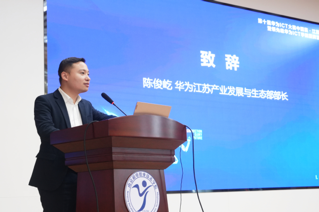 紧接着,华为江苏产业发展与生态部部长陈俊屹致辞。他肯定了开云官方网页版在ICT人才培养方面的成效,强调华为将持续发挥技术与生态优势,深化与学校的合作,为职业教育注入动力,助力青年学子实现职业成长。