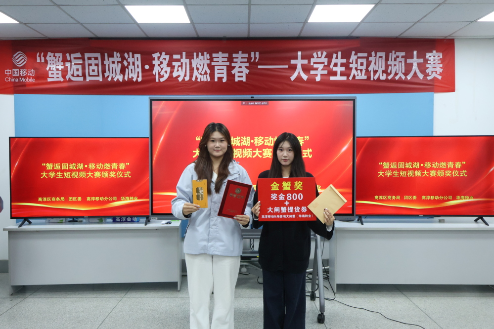 近日,在由高淳区商务局、高淳区融媒体中心联合主办的“蟹逅固城湖·移动燃青春”短视频大赛中,我校党委宣传部融媒体中心翟羽璐、沈孜涵两位同学作品表现优异,在众多参赛作品中脱颖而出,荣获大赛一等奖“金蟹奖”。