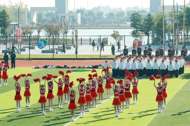 活力啦啦操队员们手持花球,动作整齐划一,用跃动的身姿诠释青春的活力。
