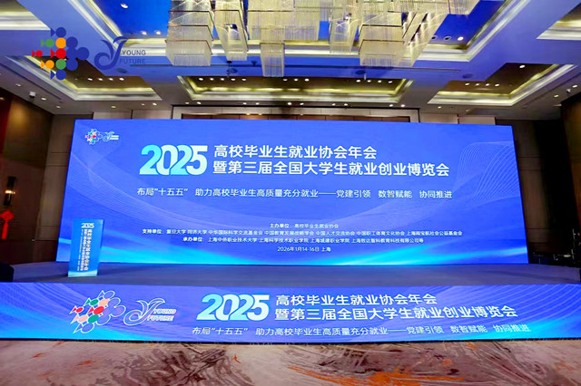 1月14日至16日,2025年高校毕业生就业协会年会暨第三届全国大学生就业创业博览会在上海举办。我校学工处副处长殷凯、学工处招就办公室主任朱专恩两位代表受邀参会,深入学习高校毕业生高质量就业工作前沿理念,对接优质就业创业资源。