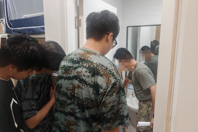“被子边角要对齐,线条要分明;物品摆放要分类归位,洗漱用品统一朝向,书桌要保持整洁无杂物……”夜幕降临后,慎行营四个连队的教官分别走进各自负责的学生宿舍,手持内务整理规范手册,手把手为新生示范标准。面对部分新生初次接触军事化内务整理的困惑,教官们不仅耐心讲解叠被、收纳的技巧,还亲自上手演示,从衣物的摆放顺序到厕所的保洁,每一个细节都细致指导。