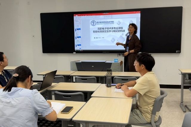 为适应智能时代发展趋势,积极响应国家“人工智能+”行动战略,落实《教育强国建设规划纲要(2024一2035年)》关于促进人工智能助力教育变革的战略部署,及2025年8月26日国发(2025)11号文《国务院关于深入实施“人工智能+”行动的意见》,进一步为推动人工智能技术与各行业领域深度融合,为人工智能与职业教育深度融合提供了顶层设计和行动纲领。电子工程系智能电子应用教研室于2025年9月30日在思学楼104开展了以“高职电子技术类专业课程智能化情景交互学习模式的构建”为主题的教学研讨活动。本次讨论聚焦电子技术相关专业基础课程教学改革,探索通过引入智能化、情景化、交互式学习模式,提升课堂教学质量与学生实践能力。