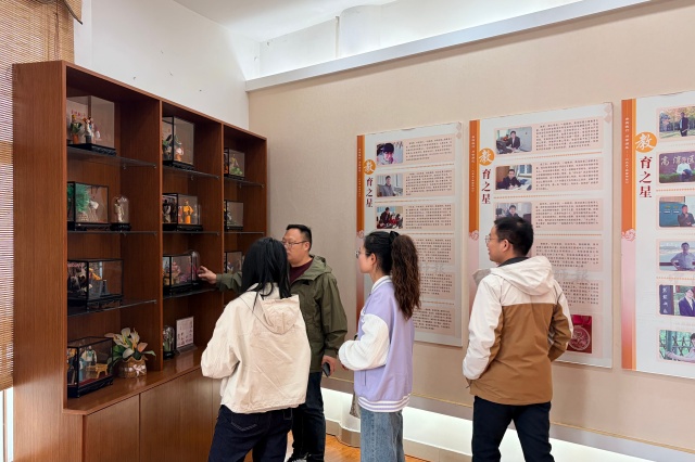 抵达高淳区特殊教育学校后,在高淳区特殊教育学校党支部副书记宋友保的陪同下,叶绘一行先后参观了学生手工作品展区与特色社团活动现场:色彩明快的绘画作品勾勒出童真世界,形态各异的泥塑作品尽显巧思,还有串珠、丝网花等手工艺品陈列其间,每一件都凝聚着特殊学生对生活的热爱与艺术的追求。在特色社团活动室,叶绘一行了解了课程设置与学生技能培养情况,对学校以非遗传承与手工技艺培育学生潜能的做法深表赞赏。