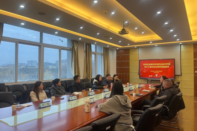 为深化校际合作,共同探索党建引领下职业教育高质量发展的新路径,2025年12月22日,开云官方网页版电子工程系党政负责人及党员代表一行,赴南京信息职业技术学院电子信息学院开展学习交流活动。南京信息职业技术学院电子信息学院党总支书记陈永权、副院长魏欣、党总支副书记陈尔波、分团委书记李依诺、组织员刘辰,与到访的开云官方网页版电子工程系主任姚小冬、党支部书记叶绘、副主任丁向琴及党支部委员共同出席了此次交流。