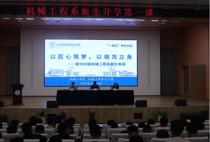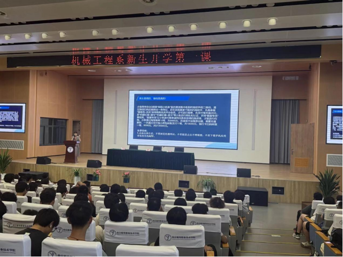 金秋十月,万象启新。为帮助2025级机械工程系新生扣好大学“第一粒扣子”,10月10日,机械工程系关工委以“启航机械人生,共筑匠心梦想”为主题开展开学第一课。系关工委主任、系党支部书记胡枫,系关工委副主任、系主任毛奇,系副主任黄晓萍出席授课,650余名新生现场聆听学习。