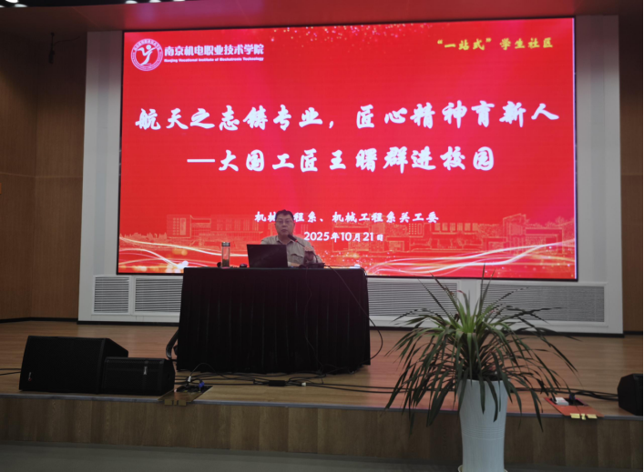 为深入弘扬新时代职业精神,厚植青年学生的工匠情怀,10月21日,机械工程系关工委成功举办“大国工匠进校园”专题讲座。全国劳动模范、“载人航天工程突出贡献者”、大国工匠、校聘关工委副主任王曙群受邀担任主讲嘉宾,与200余名师生共话职业成长与使命担当。校关工委常务副主任郭朝辉、机械工程系主任毛奇、机械工程系党支部书记、系关工委主任胡枫及相关师生代表参加活动。