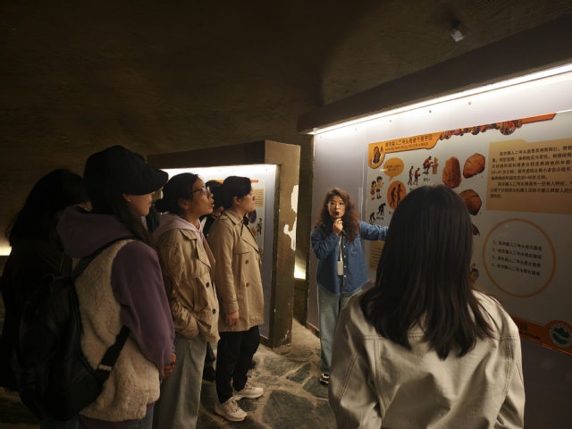 10月24日中午,参与的教职工在学校门口集合,随后前往南京指定地点统一乘车,历经约2小时车程抵达江宁汤山。首站打卡【猿人洞】(又称“葫芦洞”),近1 小时的参观中,教职工们沿着支洞遗迹探寻古人类活动痕迹,在地质标本与文字解说间,沉浸式感受宁镇地区百万年的演变历程。