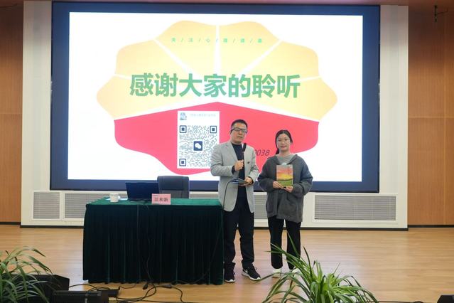 随后,江苏省心理咨询行业协会会长、南京和谐心理咨询中心主任江和新教授,以“浅谈心理健康与学习生活”为题开展专题讲座。他结合长期咨询积累的个案经验,系统解析心理健康的定义与核心要素,纠正“身体健康等同于心理健康”“心理问题即精神病”等误区;并针对学生的学习压力、就业焦虑,从“高效学习、压力应对、情绪调节、生活管理”四维度提供指导,还分享了“主动学习+小组互助”“冥想放松+倾诉分享”等实用方法,助力师生建立健康心态。