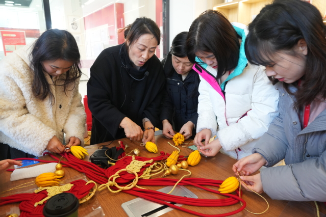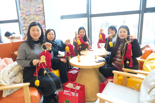 在新春游园活动之前,1月8日,学校工会已成功举办“非遗新生·2026新年限定门挂手作体验活动”,以传承中华优秀传统文化,让教职工体验非遗手工艺的独特魅力。本次活动聚焦中国古老的结绳艺术,带领教职工亲手制作蕴含东方美学与吉祥寓意的原创新年门挂。活动中,大家深入了解结绳艺术“以‘结’为‘吉’”的文化内涵,学习编织象征“双全”、寓意圆满如意的双钱结,并将竹、描金葫芦、金华佛手、铃铛等传统东方元素融入作品设计。在老师的悉心指导和大家的相互交流中,一个个独具匠心、承载新年祝福的门挂逐渐成型,教职工们在动手实践中感受非遗文化的博大精深,收获了满满的成就感与幸福感。