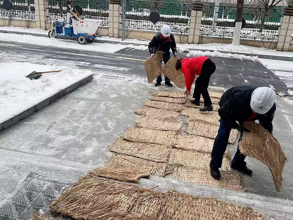 清扫工作聚焦教学楼出入口、宿舍楼道、主干道等师生通行高频区域,及时清除积雪和薄冰,并在路口、台阶、坡道等处设置“小心地滑”提示,对易结冰路段撒布融雪剂、铺设防滑垫。同时,工作人员对校内供水、供电、供暖及安防、消防系统进行了排查,及时处理低温天气可能带来的隐患。食堂也提前调配物资,保障餐食正常供应。