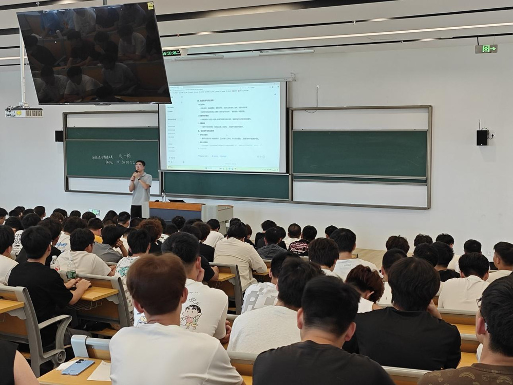 在赵老师专业地为同学们介绍之后,还邀请了两位本专业大二的学长为新生探讨来到南京机电之后的学习经历。两位学长结合自身专业学习经验,针对大一新生普遍关心的“如何学习好专业课知识”“参加竞赛的要求”等问题进行了细致解答,并通过分享自己的学习经历,合理使用AI技巧,帮助新生快速掌握如何在大学高效学习。两位学长还主动与新生展开互动,耐心倾听大家的困惑,用接地气的语言和真实案例,让新生们在轻松地交流中缓解了入学焦虑,收获了实用的适应建议。
