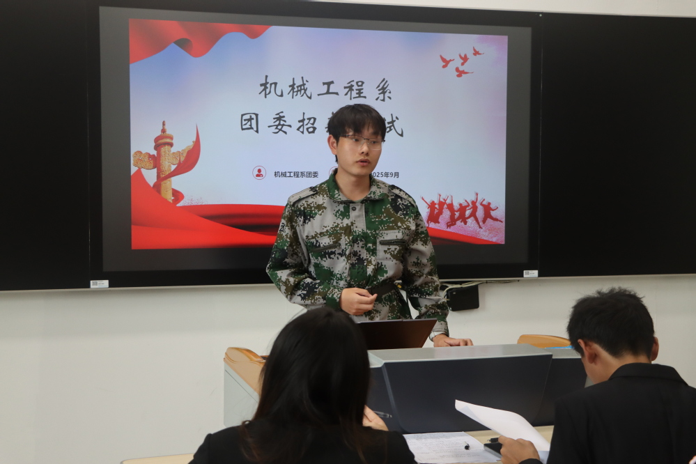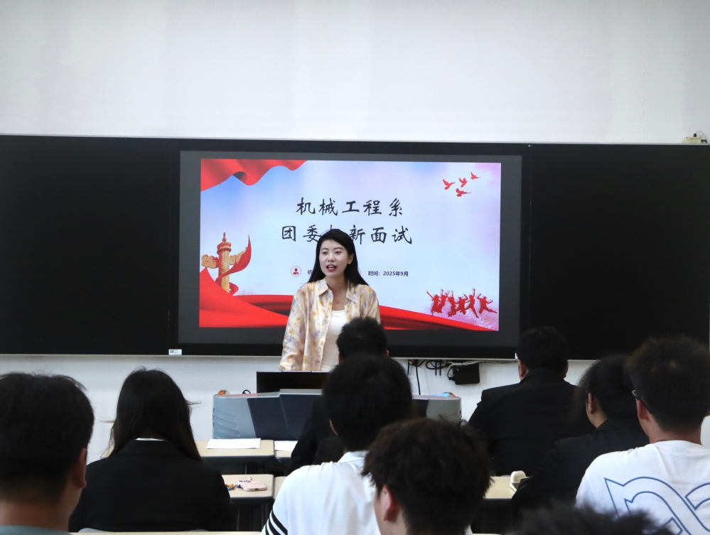 为充实团委工作队伍,激发组织活力,9月23日,机械工程系团委在思学楼103教室顺利开展25级新生招新面试。系团委书记王晨歌担任主考官,24级团委骨干共同参与评审,50余名25级新生怀揣热情与期待,展现自我风采,角逐团委干事岗位。