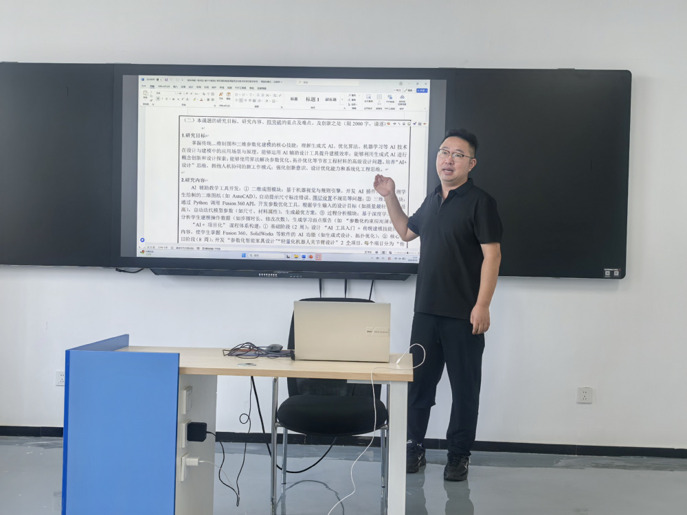 徐磊详细阐述了改革的核心目标:确保学生扎实掌握二维制图与三维参数化建模技能,深度理解生成式AI、优化算法等AI技术的应用原理,并能熟练运用AI工具提升设计效率、驱动创新探索与解决材料优化等复杂工程问题。徐磊强调,改革将着力攻克AI工具与主流软件兼容性、三维优化准确性及个性化学习路径生成等关键挑战。