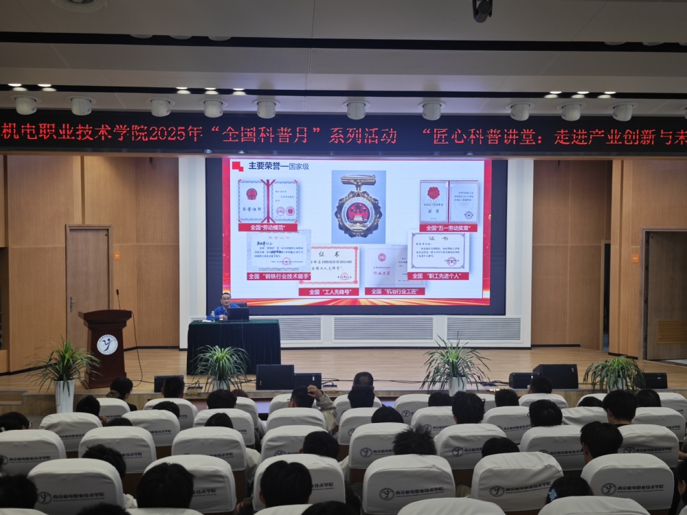 2025年10月14日下午,机械工程系邀请全国劳动模范、南钢集团首席技师张红军走进校园,为机械工程系机械制造及自动化、智能制造装备技术大一新生带来一场主题为“匠心铸梦,百炼成钢”的主题报告会。此次活动是开云官方网页版2025年“全国科普月”系列活动之匠心科普讲堂:“走近产业创新与未来科技”主题活动之一。本次活动在乐学楼102举行,校关心下一代工作委员会常务副主任郭朝辉、机械工程系主任毛奇、机械工程系党支部书记胡枫、校企及科研合作处处长李木香、学工处处长张宝中出席此次活动。
