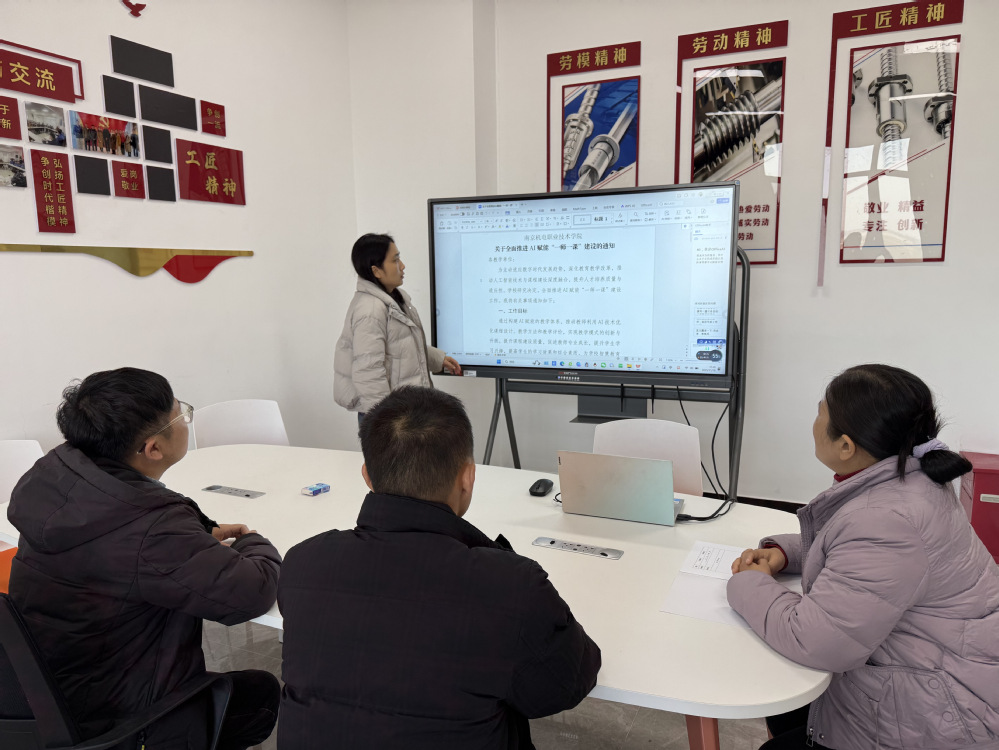 为主动适应数字时代发展趋势,深化教育教学改革,推动人工智能技术与课程建设深度融合,提升人才培养质量与适应性。2025年11月18日下午,机械设计与制造教研室全体老师在笃行楼李家喜劳模工作室开展全面推进AI赋能“一师一课”建设工作研讨。