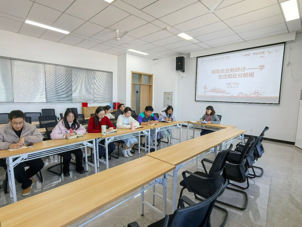 1月14日,机械工程系组织全体辅导员开展业务研讨活动,重点学习学生违规违纪处分的新规定。此次学习由机械工程系党支部书记胡枫领学,旨在提升辅导员队伍对学生管理工作的认识与能力,确保新规精准落地。
