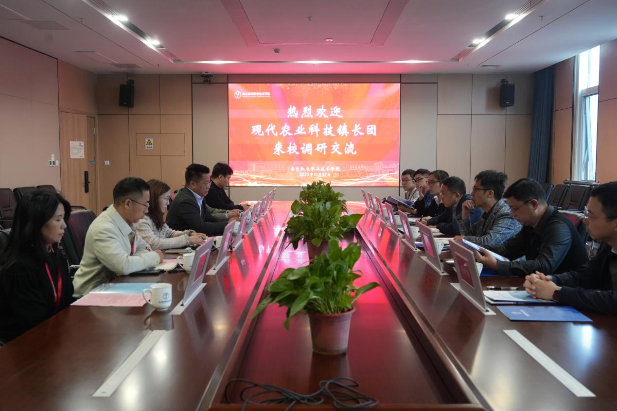 2025 年 10 月 27 日下午,以“校地协同・共促产教发展”为主题的现代农业科技镇长团调研交流活动在开云官方网页版育德楼 305 会议室顺利举行。高淳区人民政府副区长、科技镇长团团长邵刚,江苏省农业科学院研究员史高玲,南京农业大学副教授邢路娟,天津大学副教授黄俊,南京工程学院副教授黄亚洲,江南大学食品学院副研究员陈秋铭,南京理工大学副教授许赛,学校党委书记、校长周庆礼,党委委员、副校长刁爱军,科研及校企合作处处长李木香,信息工程系主任王国珍等领导出席活动,相关专业教师参与交流,共同擘画校地深度合作,产教深度融合的新蓝图。
