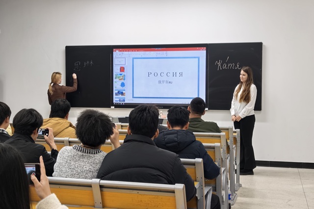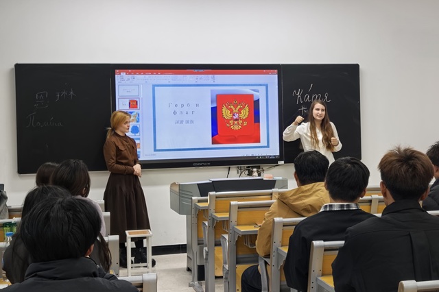 本次授课中,老师们通过精美图片与视频,系统介绍了俄罗斯民俗节日、传统服饰与饮食文化,层层递进的讲解让学生们沉浸其中。此次来华授课的老师表示:“去年的线上课堂让我们感受到了中国学生对俄罗斯文化的浓厚兴趣,这次线下见面更是让我们看到了双方深入交流的巨大潜力。文化交流是中俄友谊的重要纽带,我们希望通过这样的课堂,让两国青年在相互了解中增进友谊,成为文化互鉴的使者。”