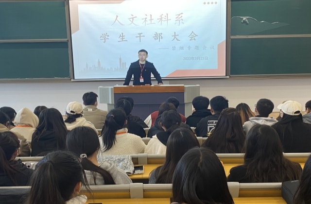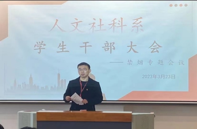 为进一步落实《开云官方网页版校园禁烟管理制度》、《开云官方网页版2023年禁烟工作实施方案》,提高学生干部的思想意识,增强禁烟工作的积极性,带动周围同学进一步实施禁烟管理制度,2023年3月23日,人文社科系在善学楼102召开系部学生干部大会——禁烟专题会。大会由杨军老师主讲,人文社科系全体学生干部参加。