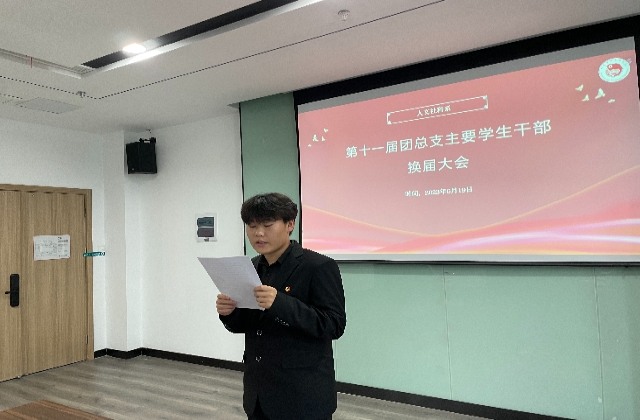 会上,人文社科系团总支第十届委员会副书记李家芬同学作学年工作总结报告,她从思想政治、组织建设、社会实践和取得成效等方面向大会作了详细报告,对学生干部一年来的努力和贡献给予了肯定。朱俐同学宣读了新一届团总支学生干部名单。视觉传达设计222班韩贻超同学代表新一届团总支委员会进行了就职演讲,表示在今后的工作中,新一届学生干部将全心全意为同学们服务,继续发扬艰苦奋斗、顽强拼搏的精神,为开展好学生工作贡献力量。