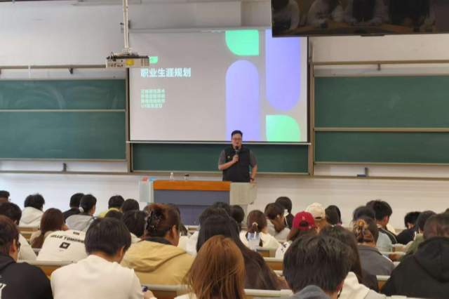 在核心内容分享环节,顾老师围绕数字创意行业的影视制作、UI设计、数字媒体、动画创作等细分领域,系统解析了不同岗位所需的“硬技能工具”与“软创作思维”,通过UE虚拟拍摄技术案例演示,让同学们直观感受行业前沿技术的应用场景。针对学子求职与创业需求,他还详细拆解了优质简历与作品集的构建逻辑,强调“教育背景+实践成果+专业技能+综合素养”的全方位展示思路,并用学生真实案例辅助讲解,为同学们提供了可操作的自我提升方案。整场讲座既有行业宏观趋势分析,又有具体实操指导,内容翔实、干货满满,赢得了同学们的热烈反响。