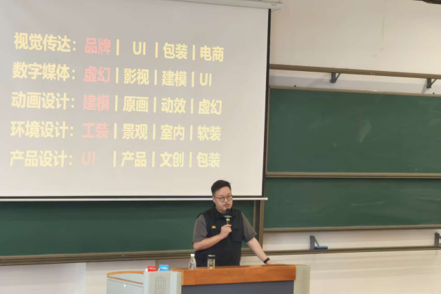 讲座中,顾老师以自身深耕数字创意领域的丰富履历为切入点,分享了参与《云之羽》《雄狮少年2》《你好李焕英》等热门影视项目的创作心得,用真实案例展现了数字创意行业的无限可能。他特别结合“哪吒2制作不限学历”的行业实例,打破了同学们对创意行业“高学历门槛”的固有认知,传递了“以专业实力为核心、以创新思维为支撑”的行业竞争逻辑。