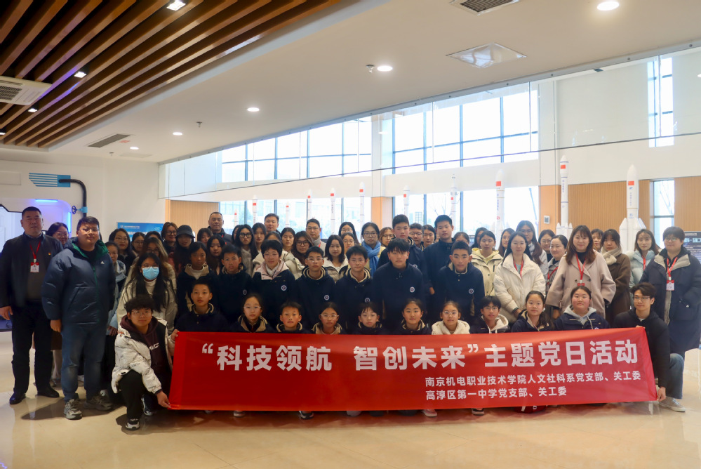 为深入落实立德树人根本任务,推动科技教育与人文素养协同发展,实现 “校地共建、资源共享、协同育人” 目标,2025年12 月 18 日下午,南机电人文社科系党支部、关工委联合高淳区第一中学党支部、关工委共同举办 “科技领航,智创未来” 主题党日活动。人文系团委积极参与活动筹备与组织工作,组织青年团员志愿者全程提供引导、讲解辅助等服务,为活动顺利开展注入青春活力。高淳区第一中学 30 余名师生代表与人文系全体党员老师、系部关工委成员共同参与此次活动,在科技探索与红色传承中厚植家国情怀、激发奋进力量。