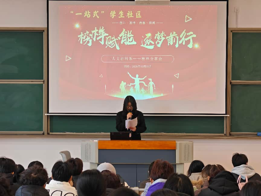 2025年12月22日,人文社科系于“一站式”学生社区勤学楼101顺利举办“逐梦前行·榜样赋能”榜样分享会。本次活动旨在发挥榜样示范引领作用,为学子搭建成长交流平台,凝聚奋进力量,助力学生全面发展。