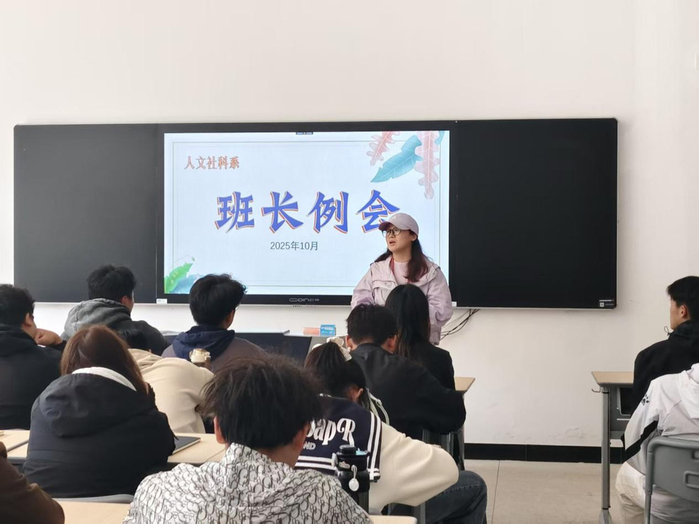 2025年10月22日中午,人文社科系于“一站式”学生社区博学楼113室召开班长工作例会。会议由系指导老师梁娟娟主持,各班班长全员参会。此次例会以规范班级管理、激活校园活力为核心,重点部署班级“三会”制度规范相关工作,为提升基层班级治理效能筑牢基础。