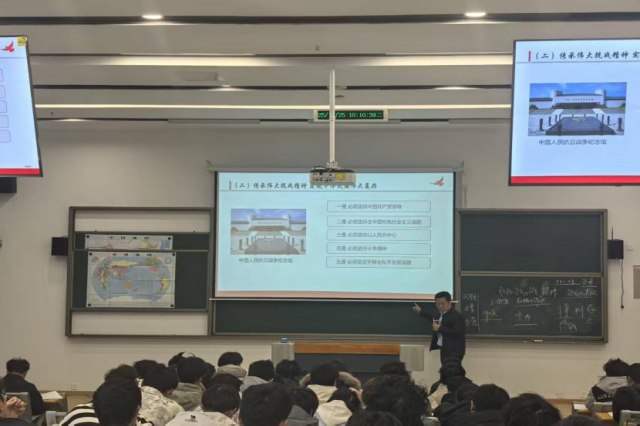 在教学过程中,周书记以严谨的史学视野,系统阐释了中国人民抗日战争的历史地位和世界意义从三个维度系统阐释:首先,从世界反法西斯战争全局出发,论证了中国战场作为东方主战场的重要地位;其次,通过详实的历史资料和数据,展现中国人民为世界反法西斯战争胜利作出的巨大贡献;最后,深刻分析了中国战场对日本军国主义的有力牵制及其对全球战局产生的深远影响。他强调,抗战精神是以爱国主义为核心的民族精神的集中体现,包含天下兴亡、匹夫有责的爱国情怀,视死如归、宁死不屈的民族气节,不畏强暴、血战到底的英雄气概,百折不挠、坚忍不拔的必胜信念。这种精神财富至今仍具有重要的时代价值。