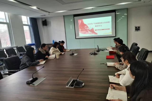 12月18日下午,马克思主义学院党支部在育德楼210会议室开展《中国共产党思想政治工作条例》解读学习,主讲为马克思主义学院党支部书记张玥,全体党员同志参加。