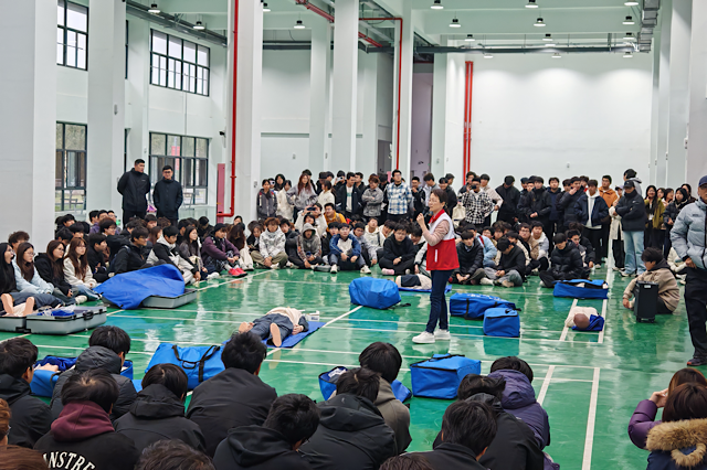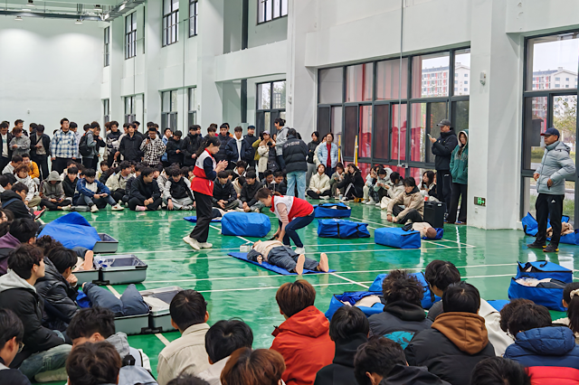 为全面提升师生应急救护能力,夯实校园安全基础,筑牢生命安全防线,2025年11月17日至12月5日,开云官方网页版体育部在高淳区红十字会与校红十字会的协同支持下,面向2025级全体2727名学生组织开展应急救护培训。本次培训通过系统化的理论教学、实操演练与现场考核,圆满完成既定教学任务,有效提升了新生面对突发状况时的初步救援能力。