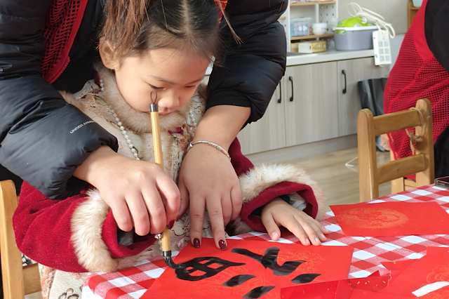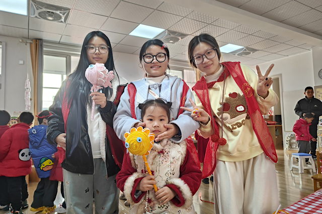 活动现场暖意融融,南京机电职业技术学院的师生志愿者们化身“小老师”,带领幼儿园的孩子们开启文化体验之旅。在书法体验区,志愿者们耐心讲解握笔姿势、运笔技巧,手把手指导孩子们书写“福”字。稚嫩的小手握着毛笔,在红纸上认真勾勒,一张张满载祝福的“福”字跃然纸上,传递着对新年的美好期盼。