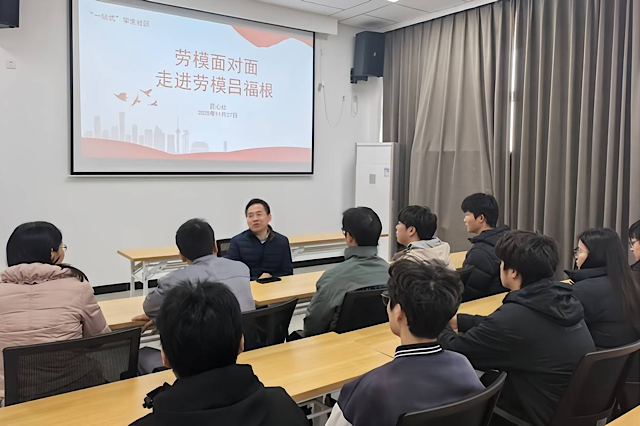 活动前期,同学们梳理吕福根劳模的从业经历、技术成果及荣誉信息,结合其个人资料设计分享流程;组织社员收集技术创新、职业坚守相关疑问,确保交流靶向性,为活动有序开展奠定基础。