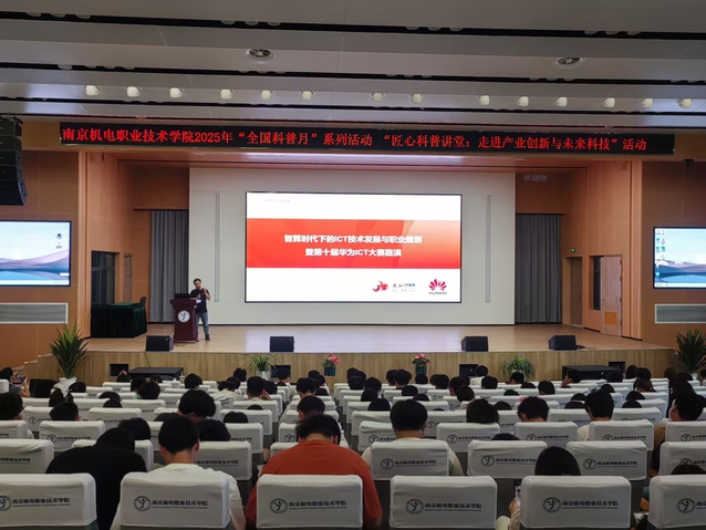 2025年9月23日,一场聚焦“智算时代下的ICT技术发展与职业规划”的专题讲座暨第十届华为ICT大赛路演活动成功举办。本次活动是南机电2025年“全国科普月”系列活动之匠心科普讲堂:走近产业创新与未来科技”主题活动,邀请江苏万和的企业专家,深度剖析数字经济浪潮下ICT 技术的演进方向、产业人才需求及职业发展路径,为高校学子、行业从业者搭建起技术交流与职业对接的优质平台。