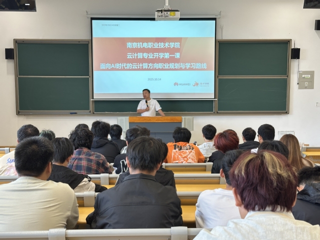 1014江苏万和系统集成有限公司总经理苏正坤受邀为云计算技术应用专业2025级新生,带来新生第一课专题讲座,聚焦专业认知、行业前景及 AI 融合,贴合高职生技能成长路径答疑。