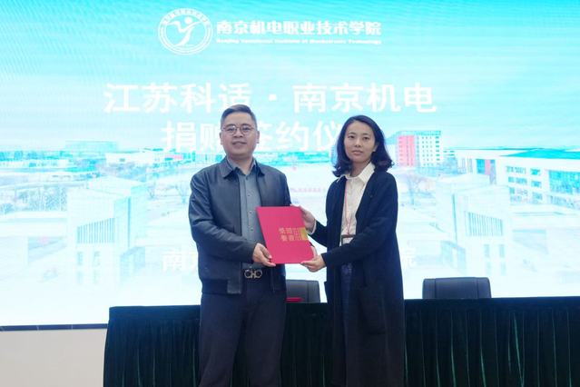 在全场热烈的掌声中,刁爱军与陈俊屹共同为“领先级华为ICT学院”揭牌,这一揭牌仪式标志着学校在ICT领域的校企合作与人才培养正式进入新阶段。随后,活动进入签约与捐赠环节:学校信息工程系主任王国珍与上海天御星空航天科技有限公司轮值CEO屈明签订大学生创新创业实践基地合作协议并授牌;信息工程系副主任刘娴与江苏科适微讯电子科技有限公司总经理马玉中完成捐赠仪式,进一步拓展了学校校企合作的广度与深度。各环节结束后,现场嘉宾与师生代表共同合影留念,定格这一重要时刻。