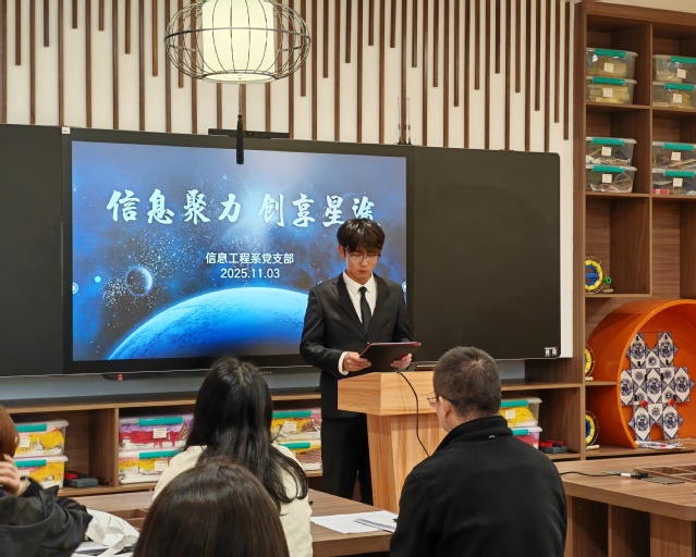 11月4日,信息工程系以“信息聚力,创享星途”为主题的创客周启动仪式在创客工坊隆重举行。本次活动不仅是系部激发团学骨干创新热情、搭建创意转化交流平台的重要举措,更是系部关心下一代工作重点实践项目,标志着为期一周的“创新赋能青年成长”主题系列活动正式拉开序幕。信息工程系主任王国珍、党支部书记陈雪、青年统战委员兼关心下一代工作委员会秘书郝麒、办公室主任郑旻璐,以及系部专业团队老师孟威、黄婉晴,专利公司指导老师及全体团学骨干共同出席仪式,在创新氛围中传递关怀,助力青年成长。