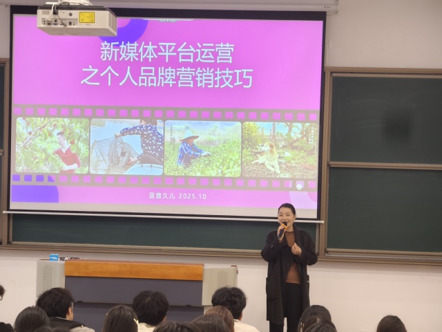 2025年10月30日,一场主题为“新媒体平台运营之个人品牌营销技巧分享”的专题活动在善学101教室顺利举行。本次活动专门面向信息工程系2025级移动商务专业全体学生,由南京市慢淳乡村旅游专业合作社资深讲解员仝久宏担任主讲嘉宾。活动旨在帮助同学们系统掌握新媒体运营核心逻辑,精准把握个人品牌打造路径,为今后职业发展筑牢技能基础。