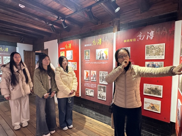 在纪念馆讲解员的引导下,师生们怀着崇敬的心情有序参观。从新四军在高淳建立抗日根据地的艰难历程,到将士们使用过的武器装备、撰写的战斗日记,再到当地群众支援前线的感人故事,每一件实物、每一段文字、每一幅画面都深深触动着在场学生。大家认真聆听讲解,不时驻足凝视、交流感悟,在历史的回响中深刻体会革命先辈们为民族独立和人民解放所付出的艰辛努力,进一步理解了“坚定信念、听党指挥、为民造福、百折不挠” 的新四军精神内涵。