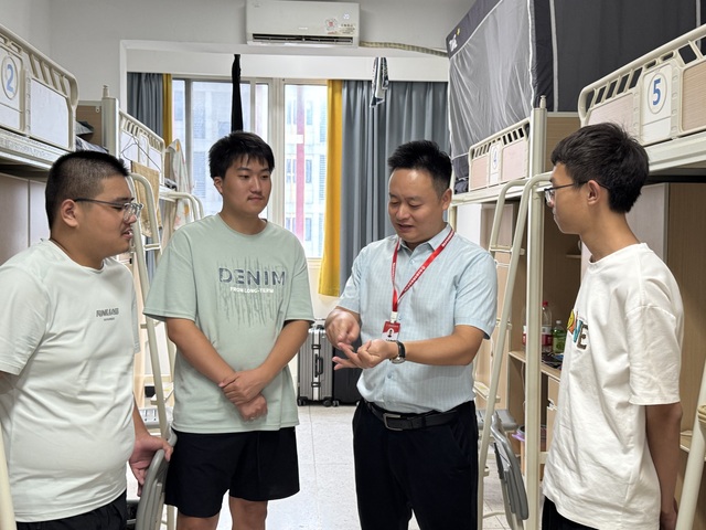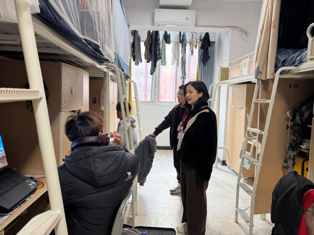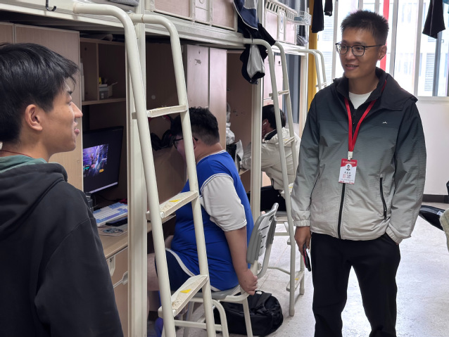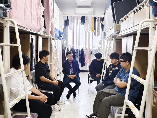 在落实“心晴护航助成长 多元关怀暖人心”服务模块过程中,三个支部聚焦学生全面发展需求,构建起覆盖学习适应、生活保障、心理疏导、成长激励的多元关怀体系。党委工作部部长高水冕带领党员干部多次深入宿舍开展座谈交流,精准对接学生诉求。针对 2025 级新生融入难题,重点关注其住宿适应、饮食习惯、课程学习及校园生活等方面的困惑,耐心倾听心声、细致解答疑问,现场协调相关部门解决生活服务类问题,并明确办结时限,让新生快速感受到校园温暖;针对全体学生,结合宿舍走访情况常态化强调安全规范,倡导互帮互助的宿舍氛围,助力学生身心健康成长。同时,支部党员通过定期谈心谈话、线上线下答疑等方式,持续开展心理疏导与成长引导,为学生搭建起“心晴”护航桥梁,让多元关怀真正落地见效。
