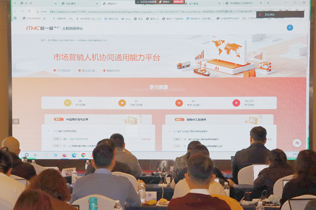 11月29日上午,研讨会在两场精彩的主题报告中拉开帷幕。中教畅享科技股份有限公司副总经理潘洪锋以《AI赋能财经商贸类专业建设,人机协同能力提升探索实践》为题,深入剖析了AI在专业建设中的关键作用,分享了人机协同能力提升的创新实践案例,为与会者勾勒出行业发展的新蓝图。随后,中教畅享科技股份有限公司畅享研究院房瑜带来《财经商贸类专业人机协同能力培养实施路径探讨》的主题报告,从理论到实操,细致探讨了培养人机协同能力的具体路径,为专业教学提供了切实可行的指导。