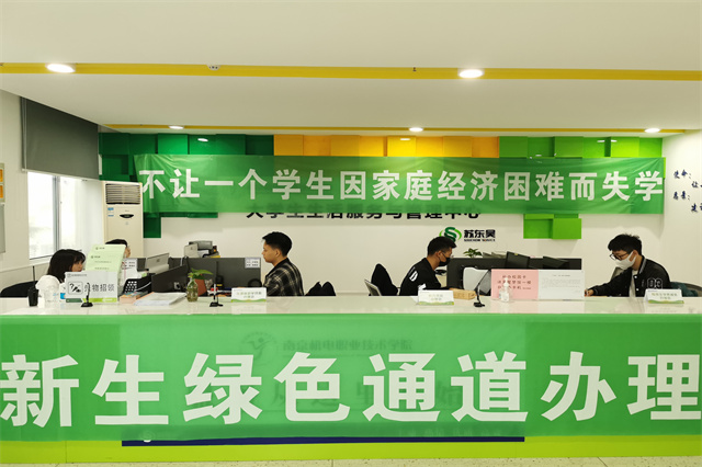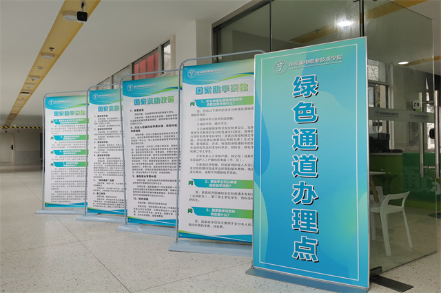 在新生入学报到期间,专门设立了“缓交学费”“政策咨询”“残疾生学费减免”“校内资助”“生源地助学贷款”等专项服务台,让家庭经济困难新生通过“绿色通道”快速、顺利入学。在新生报到前,学校已提前为398名生源地助学贷款新生办理学费缓交确认手续,实现生源地贷款学生“报到即入学”。