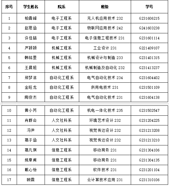 根据《教育部财政部关于印发〈本专科生国家奖学金评审办法〉的通知》《省教育厅关于做好2025年普通高校国家奖学金国家励志奖学金有关工作的通知》等文件精神,我校认真落实国家奖学金评审相关工作。经学生个人申报、辅导员推荐、上报系部评审小组,对申请学生资格及材料进行审核。通过后各系组建了至少5名专家构成的评审组,于10月13日分别组织现场汇报答辩,评审专家现场评分。根据书面材料量化得分(占60%)与现场汇报得分(占40%)综合计算成绩,各系按综合成绩排名确定拟推荐获奖学生名单,并在系内公示。学生工作处学生资助管理中心对评审材料、程序及结果进行了复审,确认材料完整、程序规范、结果准确。上报学校国家奖学金评审领导小组(学生工作指导委员会)审议通过,现将2024-2025学年学校国家奖学金获奖学生建议名单公示如下: