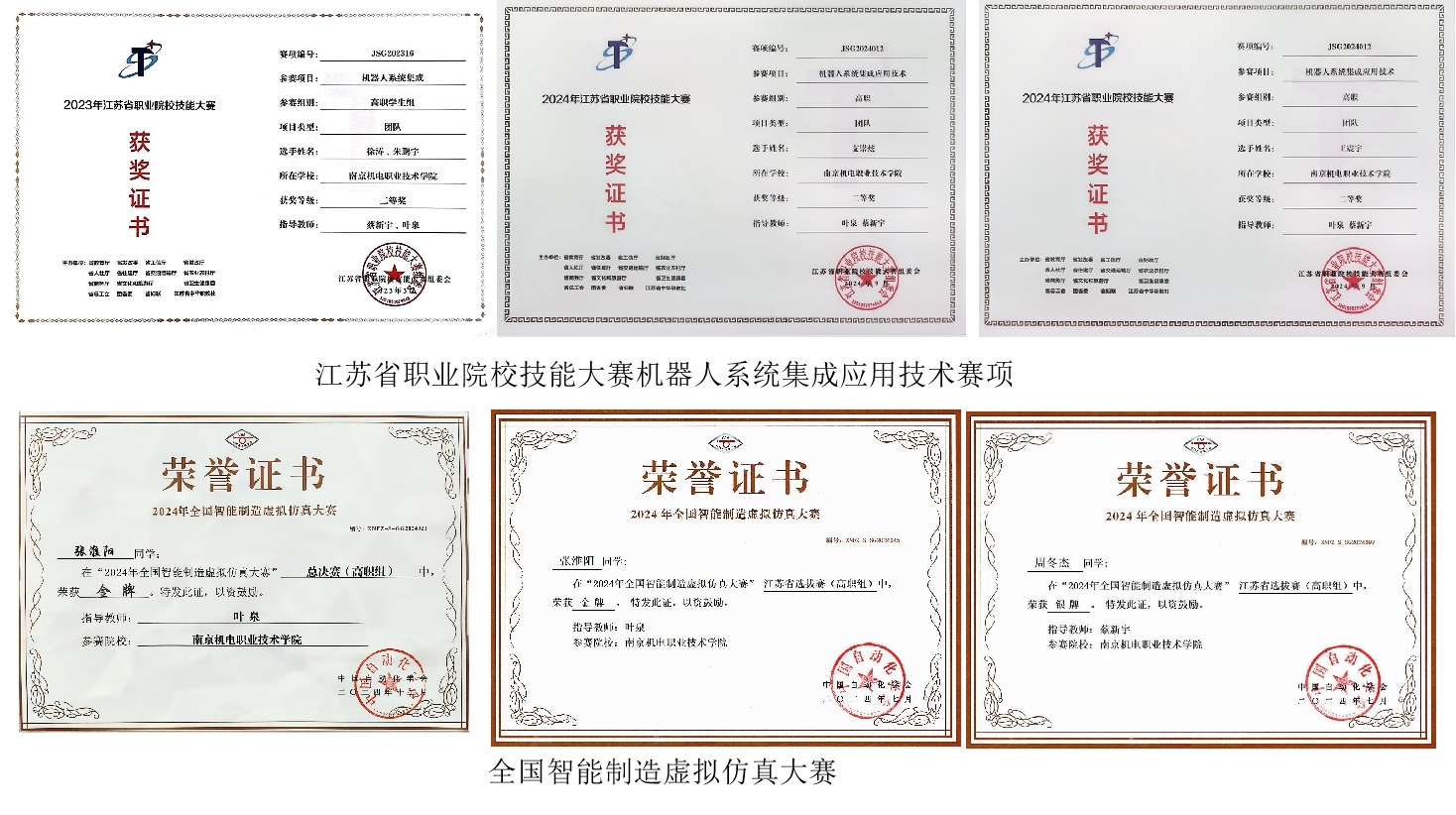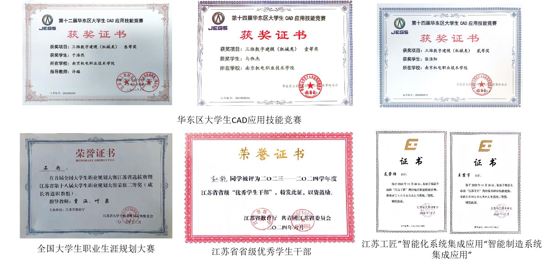 机电一体化技术班集体获评“江苏省先进班集体”“南京市五四红旗团支部”称号,学生荣获年度“中国大学生自强之星”称号,全国职业院校技能大赛“机器人系统集成应用技术”一等奖、江苏省职业院校技能大赛“机器人系统集成应用技术”二等奖、“江苏工匠”智能化系统集成应用“智能制造系统集成应用”赛项一等奖、二等奖、全国大学生机器人大赛ROBOTAC赛项二等奖、三等奖,江苏省大学生机器人大赛二等奖,华东区大学生CAD应用技能竞赛二等奖、三等奖等。近两年,学生申报专利近400项,授权专利近300项,机电一体化技术173班被《现代快报》“最牛发明班”专题报道。