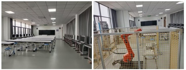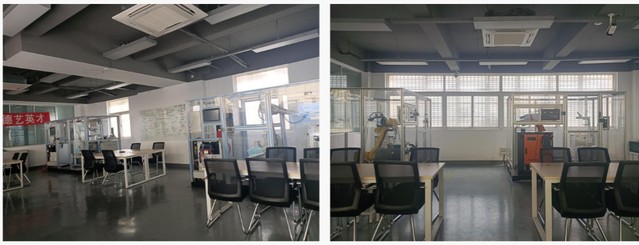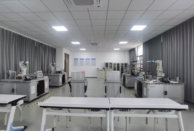 (3)工业机器人工作站实训中心。该实训室综合了自动控制、位置控制、电机控制、气动控制、可编程控制器、传感器等技术,满足工业机器人操作、工业机器人系统集成等设备培训,以及工业机器人考证的需要。