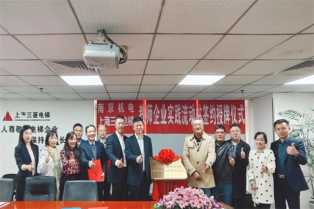 依托上海三菱电梯产业学院,探索校企人才双向流动机制,共建南京机电·上海三菱电梯教师企业实践流动站。聘请10余名企业导师,开展师资交流、研讨、培训等业务,将现代产业学院建设成“双师双能型”教师培养培训基地。开展校企导师联合授课、联合指导,打造一支高水平的专业教学团队。
